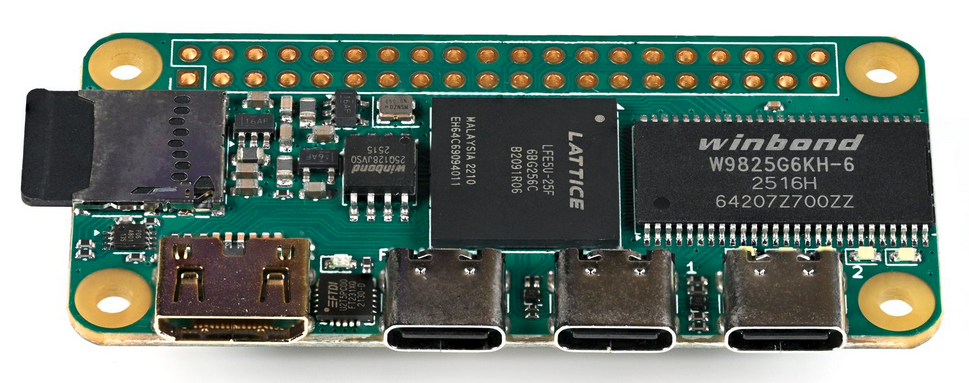 It has DVI out, a fast SDRAM, two USB ports for the. keyboard and mouse, an SD card reader, and a USB port to connect to the desktop. Everything else it leaves to the Raspberry Pi ecosystem, which is easy to plug into since it has the Raspberry Pi form factor. Lattice ECP5 is an older chip, it still supports 3.3V peripherals, which is perfect for interfacing to the Raspberry Pi ecosystem: no level shifters are needed.